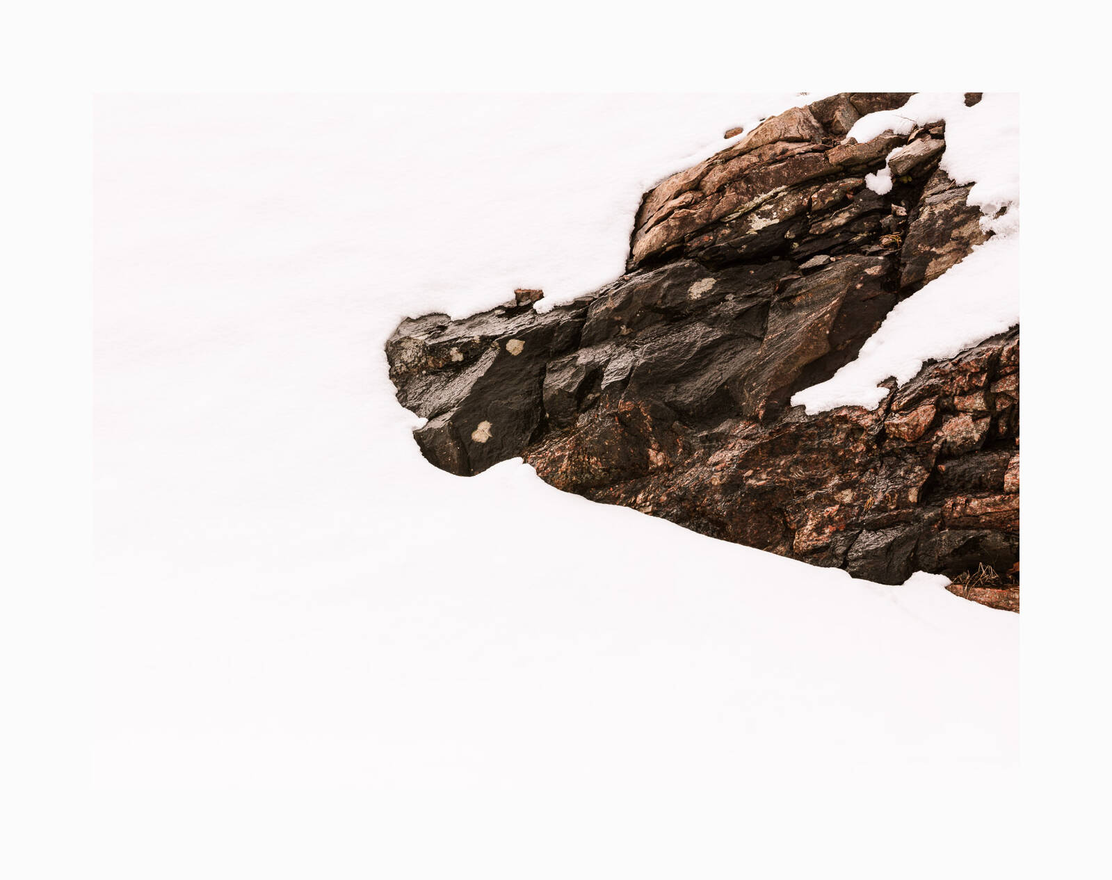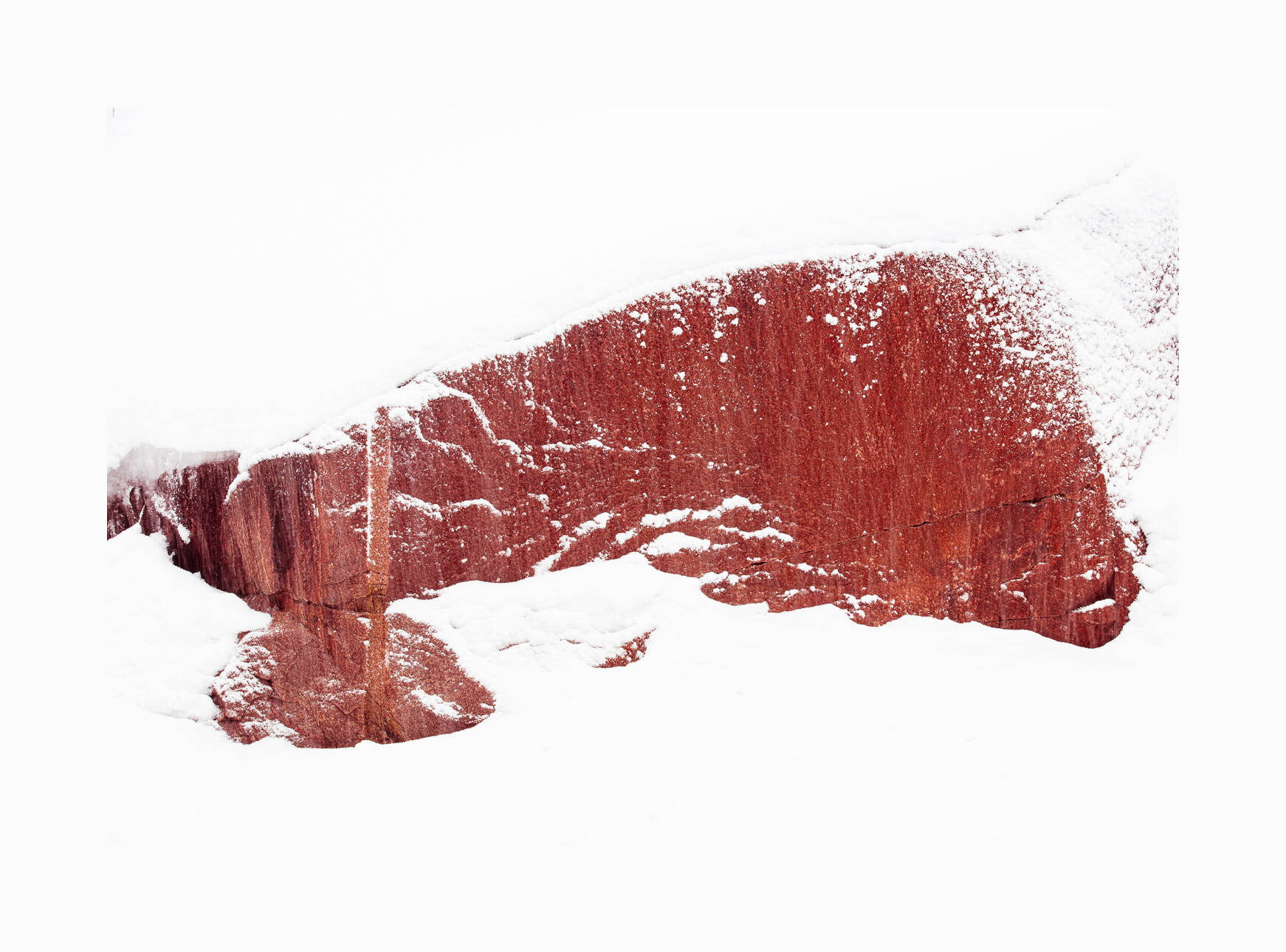 A statement about change and the ephemeral, these photographs capture moments in time that will never be replicated—the snow grows and shrinks daily as temperatures rise and fall, new snow falls and ultimately disappears for months at a time, only to reappear the following year. But never again in the same way.