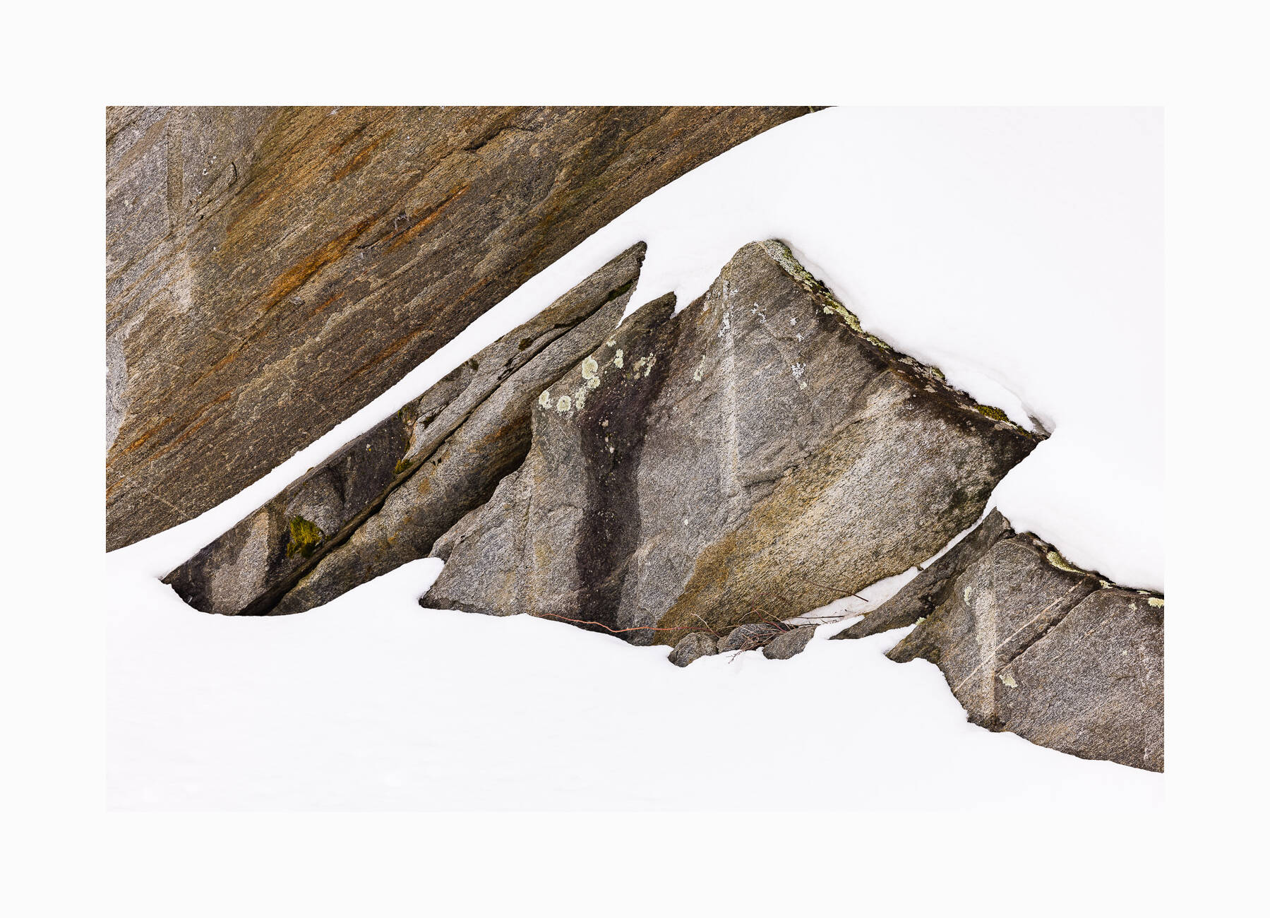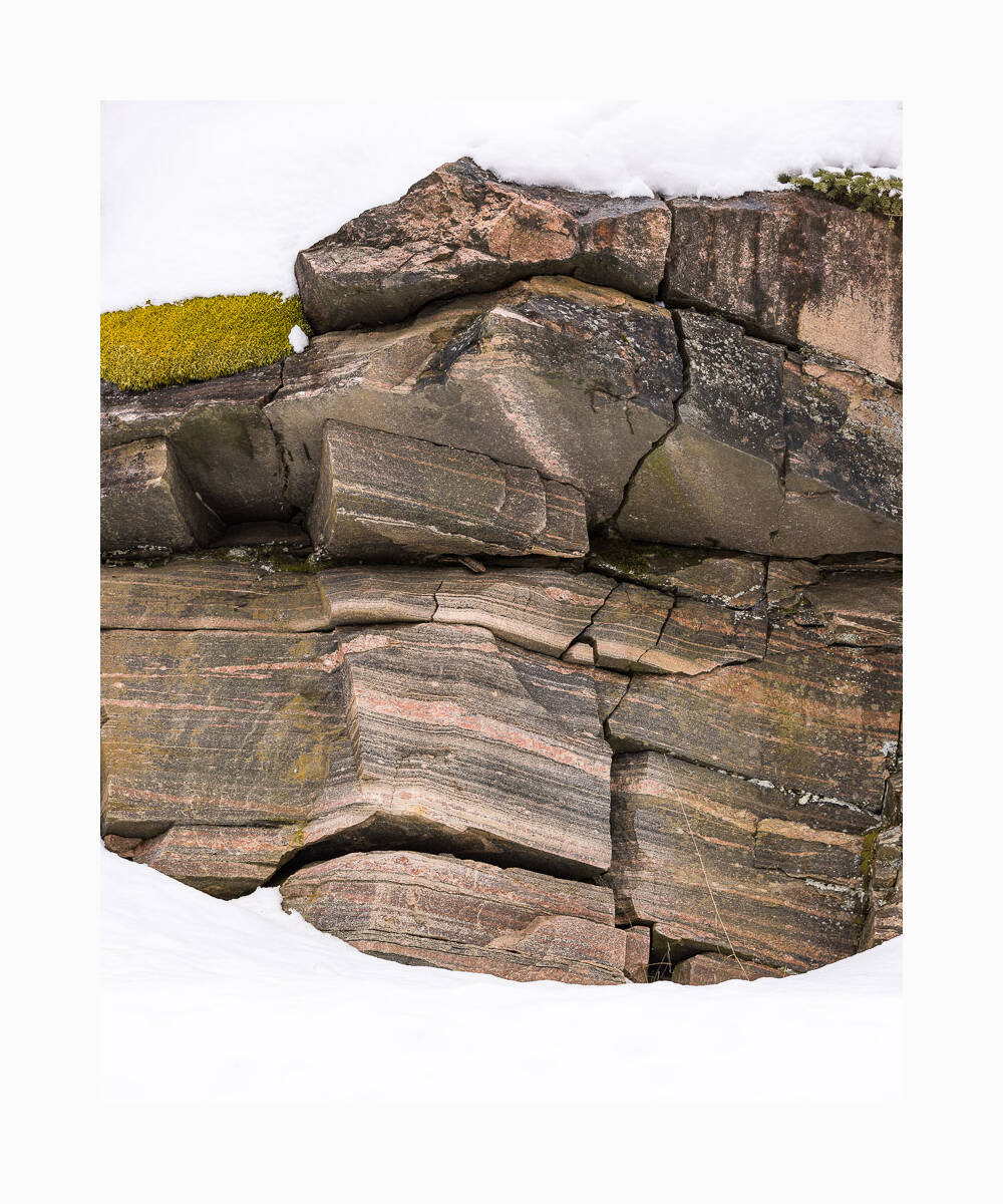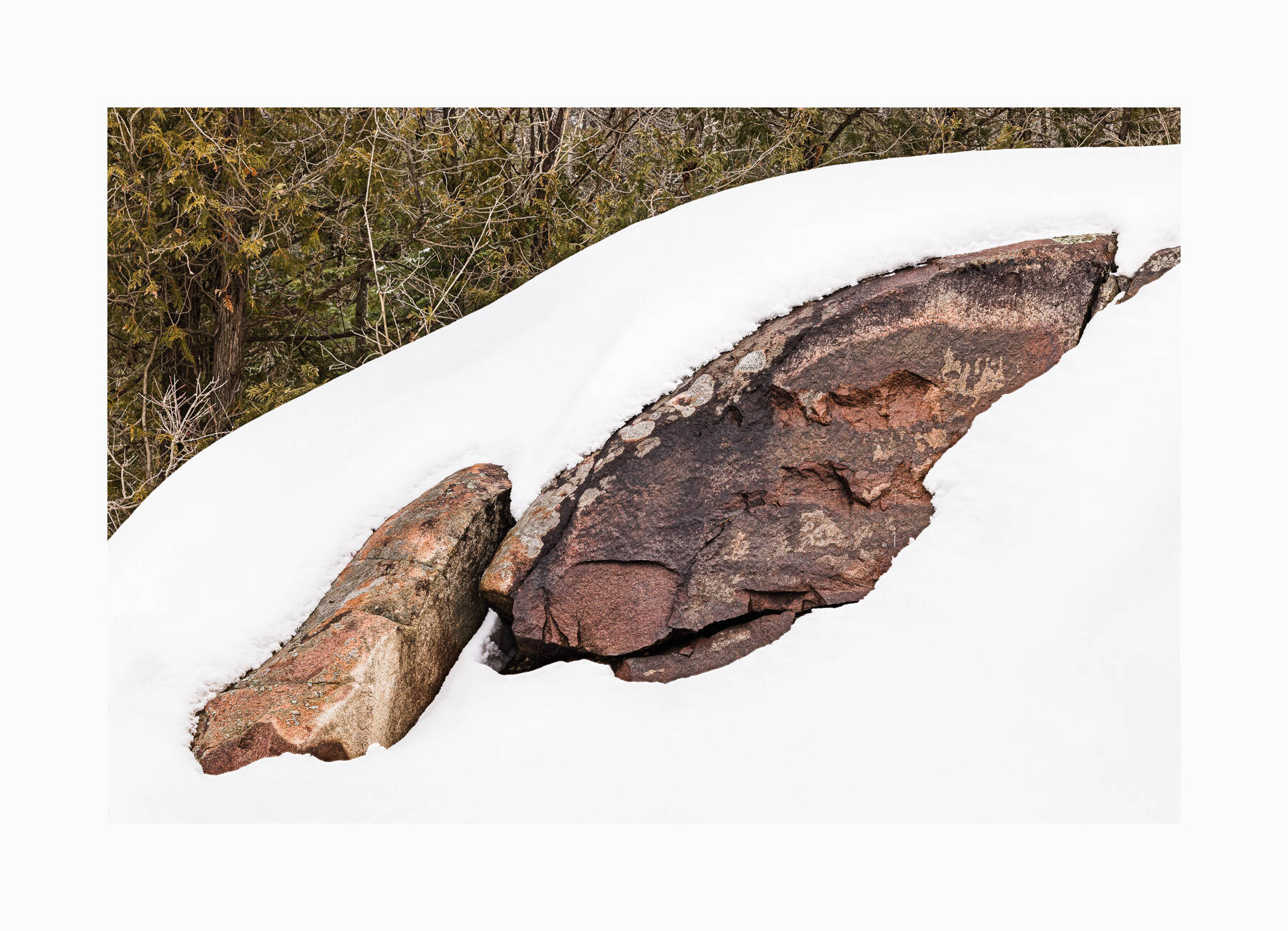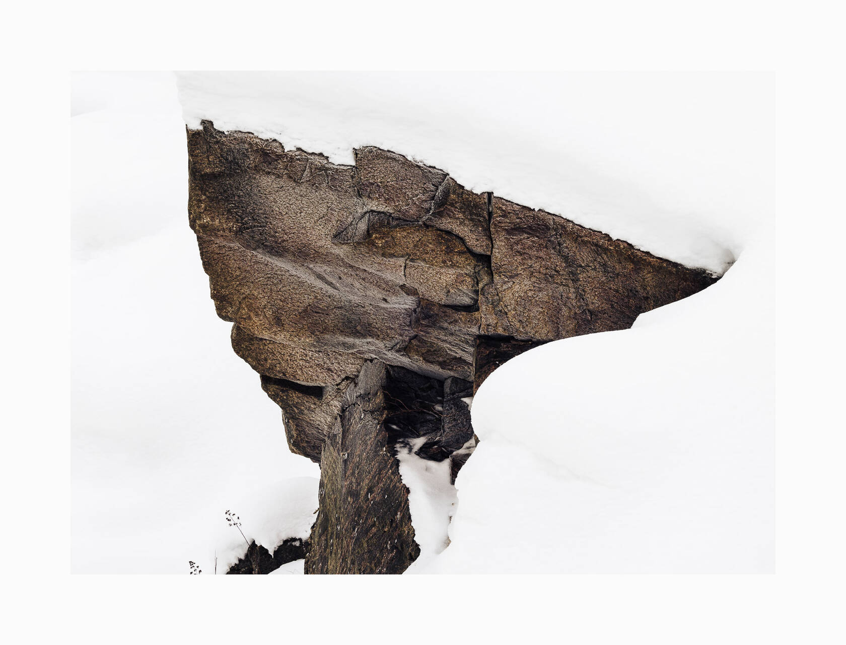 In the hushed winter landscapes of Muskoka and the Kawartha Highlands of Ontario, Stone Work emerges as a meditation on the enduring presence of the Canadian Shield and its fleeting concealment beneath snow. This series of photographs explores the interplay between revelation and obscurity, where the unyielding, ancient granite outcrops stand as positive forms against the enveloping negative space of snow.